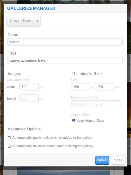 - Tags: Set the tags that are associated with the gallery (separate via a comma)